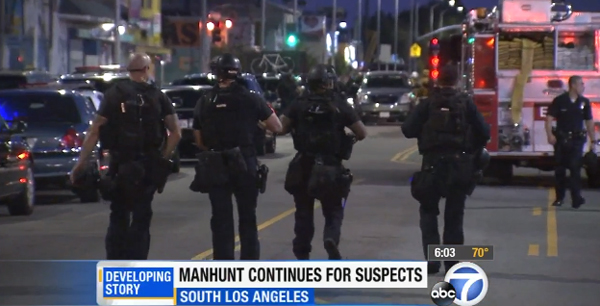 After two officers were shot by a “hands up” protester in the St. Louis suburb of Ferguson, Missouri, two officers in Los Angeles have now also been shot. The LA shooters are still at large.