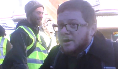 So, as it happens these union protesters blockaded the front of a Google shuttle bus preventing it from leaving a stop on Valencia Street. Enter Mr. yelling jerk guy who exited the bus and started screaming at the union protesters saying he was a Google employee and couldn’t get to work because of the union intervention.