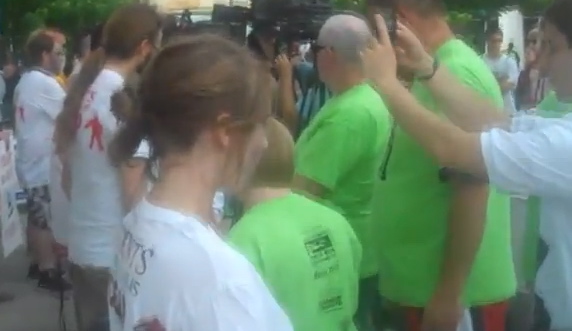 Liberals are not exactly known for their capacity for shame or their attention to decorum. Whether it’s teaching kids to do songs praising Obama or turning a funeral into a campaign rally, they’re willing to go as far as it takes to get their point across, even if that point is “Free MUMIA” or “BUSH LIHOP!” But right now, all across America, there are probably cult leaders who are staring in open mouthed amazement at the sheer glassy eyed fanaticism it took to do this.